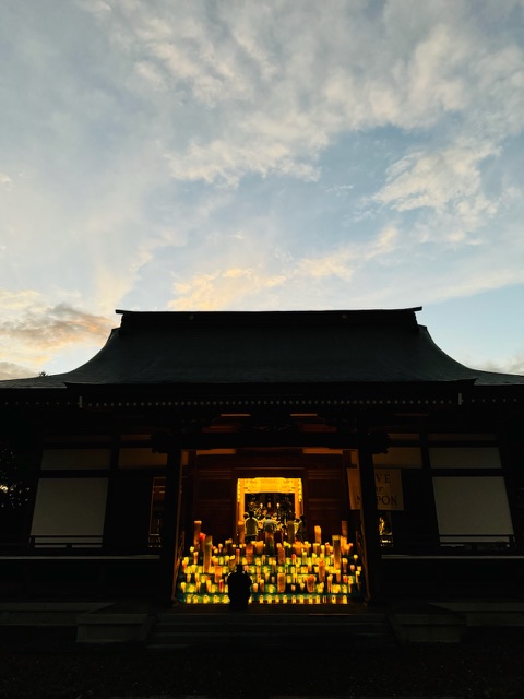夕方にお寺でキャンドルの灯火でその夢が照らされるようにしました