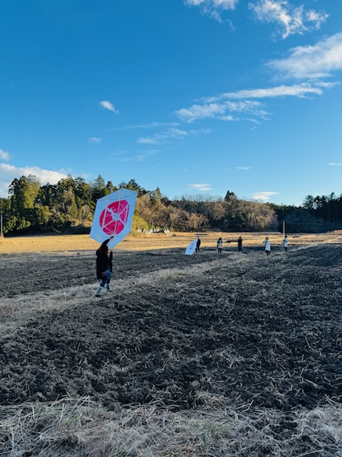 官林さんのご自宅前にある畑で凧揚げしよう!と凧持ってきてくれていました