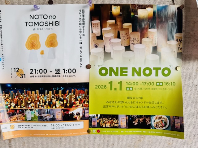 2025年12月31日・2026年1月1日能登地震から2年(NOTONOTOMOSHIBI・ONENOTO )