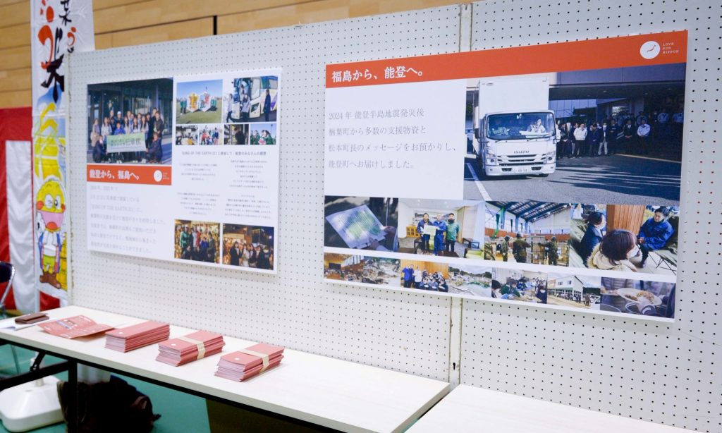 NARAHAアンバサダーのCANDLE JUNEが、楢葉町から能登への支援報告のパネル展示と登壇による説明報告等をしました。