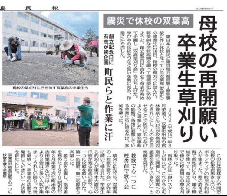 LOVE FOR NIPPON福島理事のはるさんが中心となって、「双葉高校草刈りイベント」が実現されました。